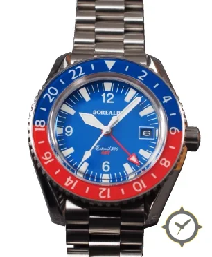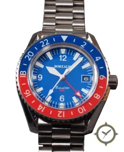 A GMT watch with a bold 43mm presence on the wrist, crafted from stainless steel featuring a blue dial with a unique matte finish and a true GMT complication for tracking a second time zone.
