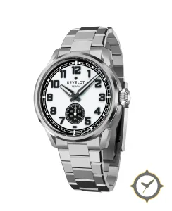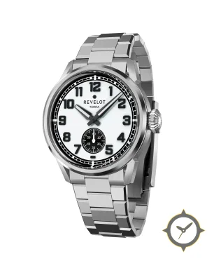 A Field watch with a bold 42mm presence on the wrist, crafted from stainless steel featuring a white dial with a unique matte finish.