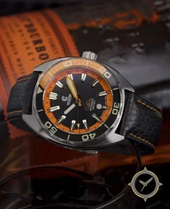 A Dive watch with a bold 49.5mm presence on the wrist, crafted from stainless steel featuring a black dial with a unique matte finish.