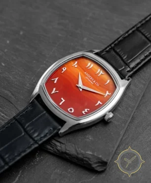 A Dress watch with a vintage-inspired 31mm case, crafted from stainless steel featuring a orange dial with a unique sunburst lacquer / gradient finish finish.