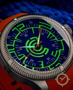 A Dive watch with a bold 47.5mm presence on the wrist, crafted from stainless steel featuring a blue dial with a unique glossy lacquer with heavy luminescent applications finish.