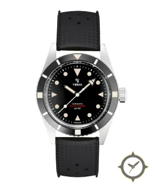 A Dive watch with a bold 44.5mm presence on the wrist, crafted from stainless steel featuring a black dial with a unique glossy lacquer finish.