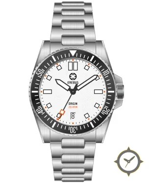 A Dive watch with a bold 45.5mm presence on the wrist, crafted from stainless steel featuring a white dial with a unique textured (grained) finish.