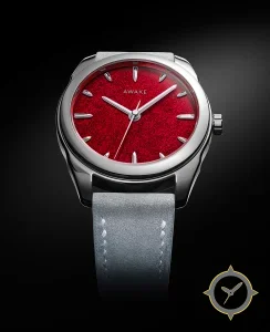 A Minimalist watch with a versatile 40mm case, that suits most wrists, crafted from stainless steel featuring a red dial with a unique suede-like / fibrous texture finish.