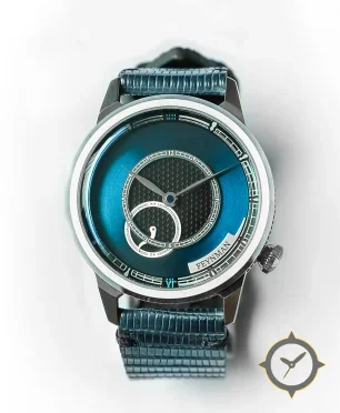 A Dress watch with a versatile 40.5mm case, that suits most wrists, crafted from stainless steel featuring a blue dial with a unique sunburst outer ring with textured (honeycomb) central section finish.