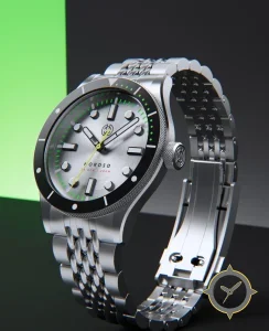 A Dive watch with a bold 45mm presence on the wrist, crafted from stainless steel featuring a silver dial with a unique brushed-sunburst finish.