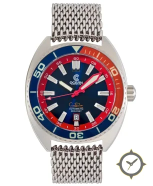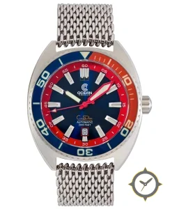 A Dive watch with a bold 42.5mm presence on the wrist, crafted from stainless steel featuring a navy dial with a unique sunburst finish.