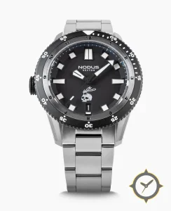 A Dive watch with a vintage-inspired 34.5mm case, crafted from stainless steel featuring a black dial with a unique matte finish.