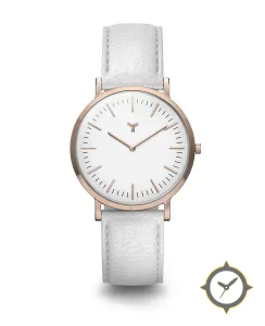 A Minimalist watch with a vintage-inspired 37.5mm case, crafted from stainless steel featuring a white dial with a unique matte finish.