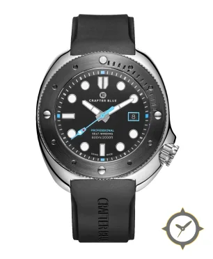 A Dive watch with a bold 51.5mm presence on the wrist, crafted from stainless steel featuring a black dial with a unique matte finish.