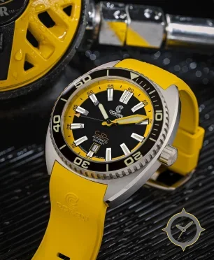 A Dive watch with a bold 46mm presence on the wrist, crafted from stainless steel featuring a black dial with a unique matte finish.