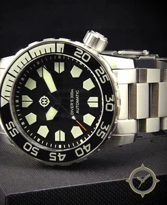 A Dive watch with a bold 47mm presence on the wrist, crafted from stainless steel featuring a black dial with a unique matte finish.