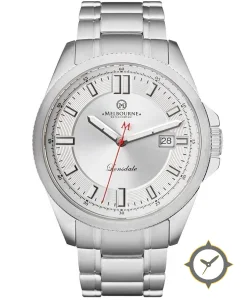 A Dress watch with a bold 50mm presence on the wrist, crafted from stainless steel featuring a silver dial with a unique sunburst with brushed finish finish.