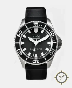 A Dive watch with a vintage-inspired 34mm case, crafted from stainless steel featuring a black dial with a unique matte finish.