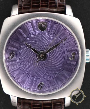 A Dress watch with a versatile 39.5mm case, that suits most wrists, crafted from stainless steel featuring a purple dial with a unique guilloché (engine-turned) finish.