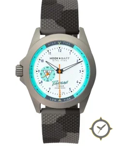 A Nautical watch with a vintage-inspired 35.5mm case, crafted from titanium featuring a white dial with a unique concentric rings finish.