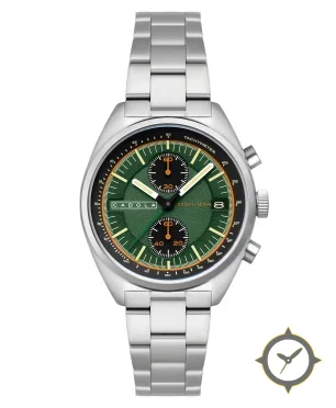 A Chronograph watch with a versatile 41mm case, that suits most wrists, crafted from stainless steel featuring a green dial with a unique grained/textured finish.