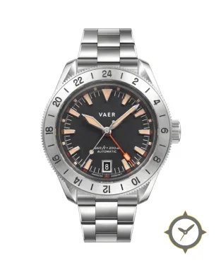 A GMT watch with a bold 42mm presence on the wrist, crafted from stainless steel featuring a black dial with a unique matte finish and a true GMT complication for tracking a second time zone.