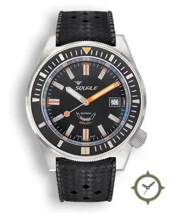 A Dive watch with a vintage-inspired 35.5mm case, crafted from stainless steel featuring a black dial with a unique matte finish.