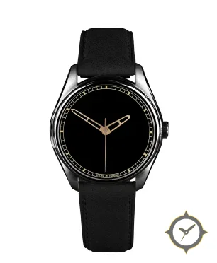 A Minimalist watch with a bold 42mm presence on the wrist, crafted from stainless steel featuring a black dial with a unique matte finish.
