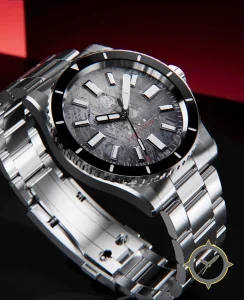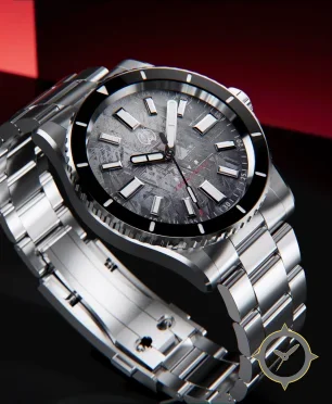 A Dive watch with a versatile 41mm case, that suits most wrists, crafted from stainless steel featuring a gray dial with a unique meteorite finish.