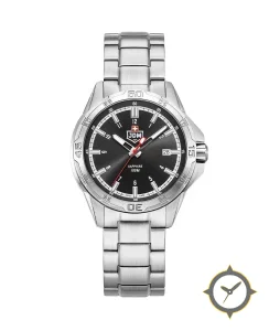 A Sports watch with a vintage-inspired 36.5mm case, crafted from stainless steel featuring a black dial with a unique sunburst finish.
