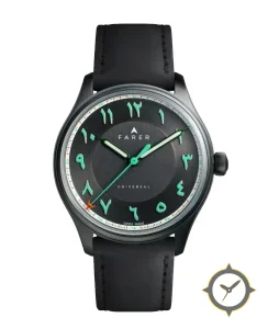 A Minimalist watch with a bold 47.5mm presence on the wrist, crafted from stainless steel featuring a black dial with a unique matte finish.