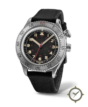A Pilot watch with a bold 46mm presence on the wrist, crafted from stainless steel featuring a black dial with a unique grained matte (textured, sandpaper-like) finish.