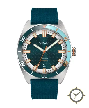A Dive watch with a versatile 38.5mm case, that suits most wrists, crafted from stainless steel featuring a turquoise dial with a unique wavy / wave pattern finish.