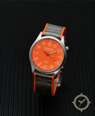 A Field watch with a vintage-inspired 36.5mm case, crafted from stainless steel featuring a orange dial with a unique matte finish.