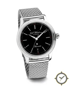 A Dress watch with a versatile 40.5mm case, that suits most wrists, crafted from stainless steel featuring a black dial with a unique glossy lacquer finish.