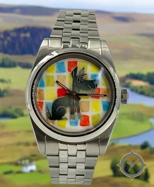 A Dress watch with a vintage-inspired 34.5mm case, crafted from stainless steel featuring a white dial with a unique hand-painted enamel finish.
