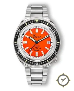 A Dive watch with a vintage-inspired 33mm case, crafted from stainless steel featuring a orange dial with a unique matte finish.