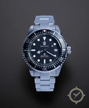 A Dive watch with a bold 45.5mm presence on the wrist, crafted from stainless steel featuring a black dial with a unique matte finish.