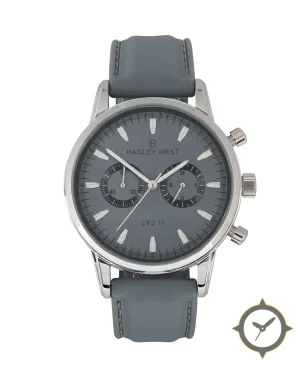 A Chronograph watch with a bold 51.5mm presence on the wrist, crafted from stainless steel featuring a gray dial with a unique matte finish.