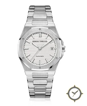 A Luxury watch with a versatile 38mm case, that suits most wrists, crafted from stainless steel featuring a white dial with a unique horizontal embossed stripes finish.