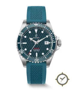 A Dive watch with a vintage-inspired 34mm case, crafted from stainless steel featuring a blue dial with a unique honeycomb finish.