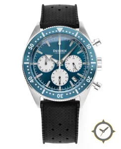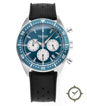 A Chronograph watch with a bold 47mm presence on the wrist, crafted from stainless steel featuring a blue dial with a unique sunburst finish.