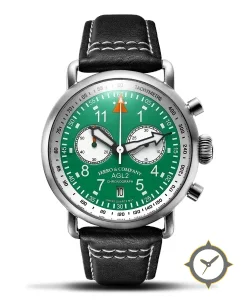 A Pilot watch with a bold 42mm presence on the wrist, crafted from stainless steel featuring a green dial with a unique matte finish.