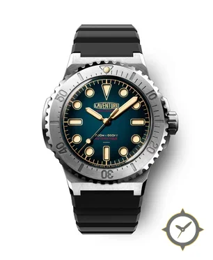 A Dive watch with a bold 44.5mm presence on the wrist, crafted from stainless steel featuring a blue dial with a unique sunburst finish.