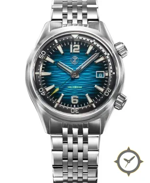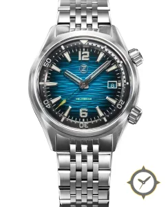 A Dive watch with a bold 45mm presence on the wrist, crafted from stainless steel featuring a blue dial with a unique wave-textured finish.