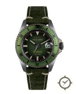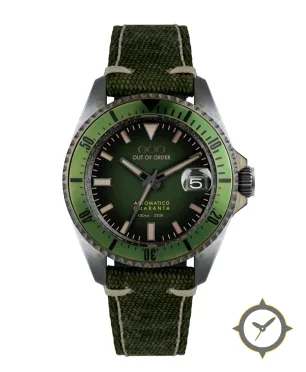 A Dive watch with a bold 44mm presence on the wrist, crafted from stainless steel featuring a green dial with a unique sunburst gradient (fumé) finish.