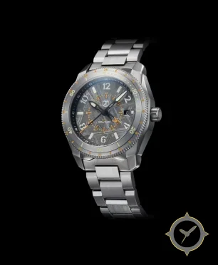 A Dive watch with a bold 48mm presence on the wrist, crafted from stainless steel featuring a gray dial with a unique meteorite finish and a true GMT complication for tracking a second time zone.