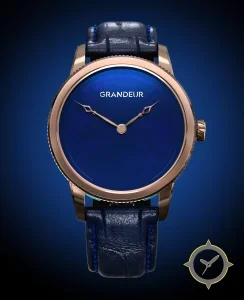 A Dress watch, crafted from gold featuring a blue dial with a unique lacquered gloss finish.