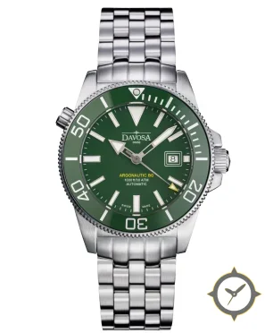 A Dive watch with a bold 44mm presence on the wrist, crafted from stainless steel featuring a green dial with a unique matte finish.