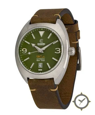 A Field watch, crafted from stainless steel featuring a green dial with a unique matte finish.