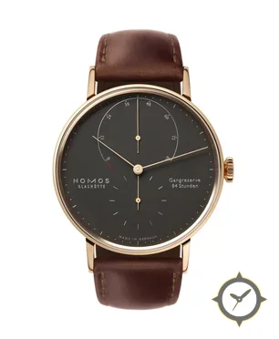 A Dress watch with a versatile 40mm case, that suits most wrists, crafted from gold featuring a gray dial with a unique matte finish and a helpful power reserve indicator.