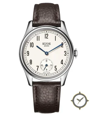 A Vintage watch with a vintage-inspired 37mm case, crafted from stainless steel featuring a white dial with a unique matte finish.