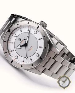 A Dive watch with a vintage-inspired 34.5mm case, crafted from stainless steel featuring a white dial with a unique smooth matte finish.