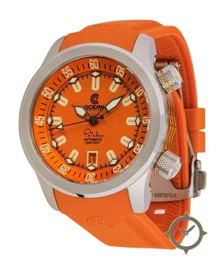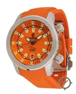 A Dive watch with a versatile 40.5mm case, that suits most wrists, crafted from stainless steel featuring a orange dial with a unique matte with a subtle wave/grain texture finish.